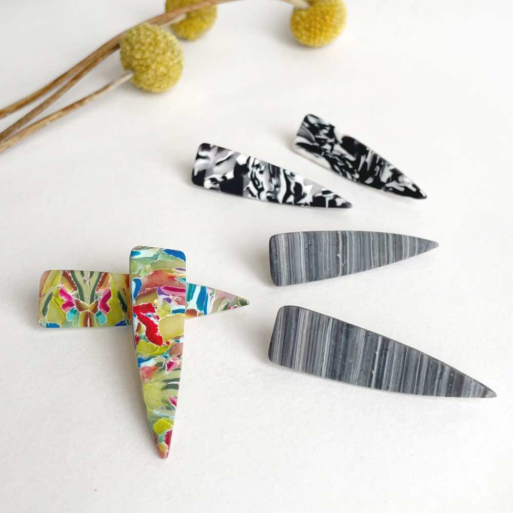 El estampado puede ser con un estampado de finas líneas o con una mezcla aleatoria de diferentes colores que le aportan a los pendientes mayor dinamismo.